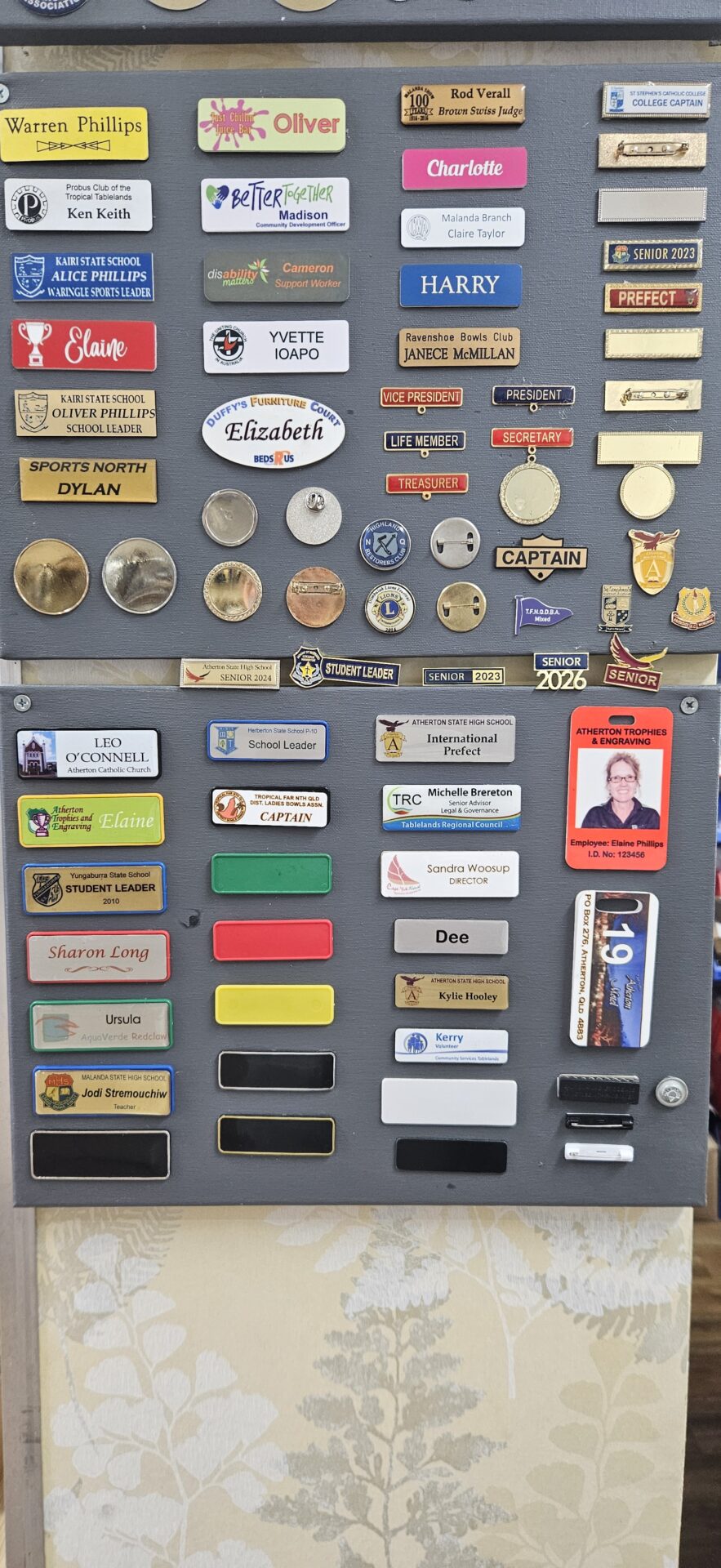 Badges, coffee mugs, mouse mats, coasters, drinkware, keyrings, plaques, medal and trophy logo inserts
