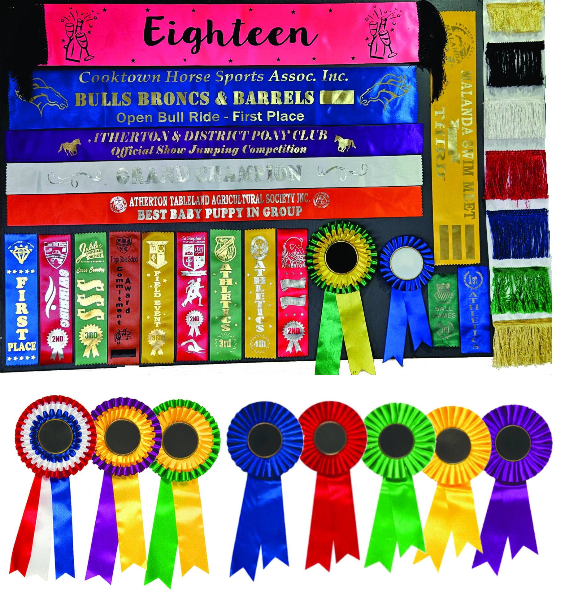 Custom-made ribbons and sashes are produced on-site and can be personalised with club or business logos, as well as images.