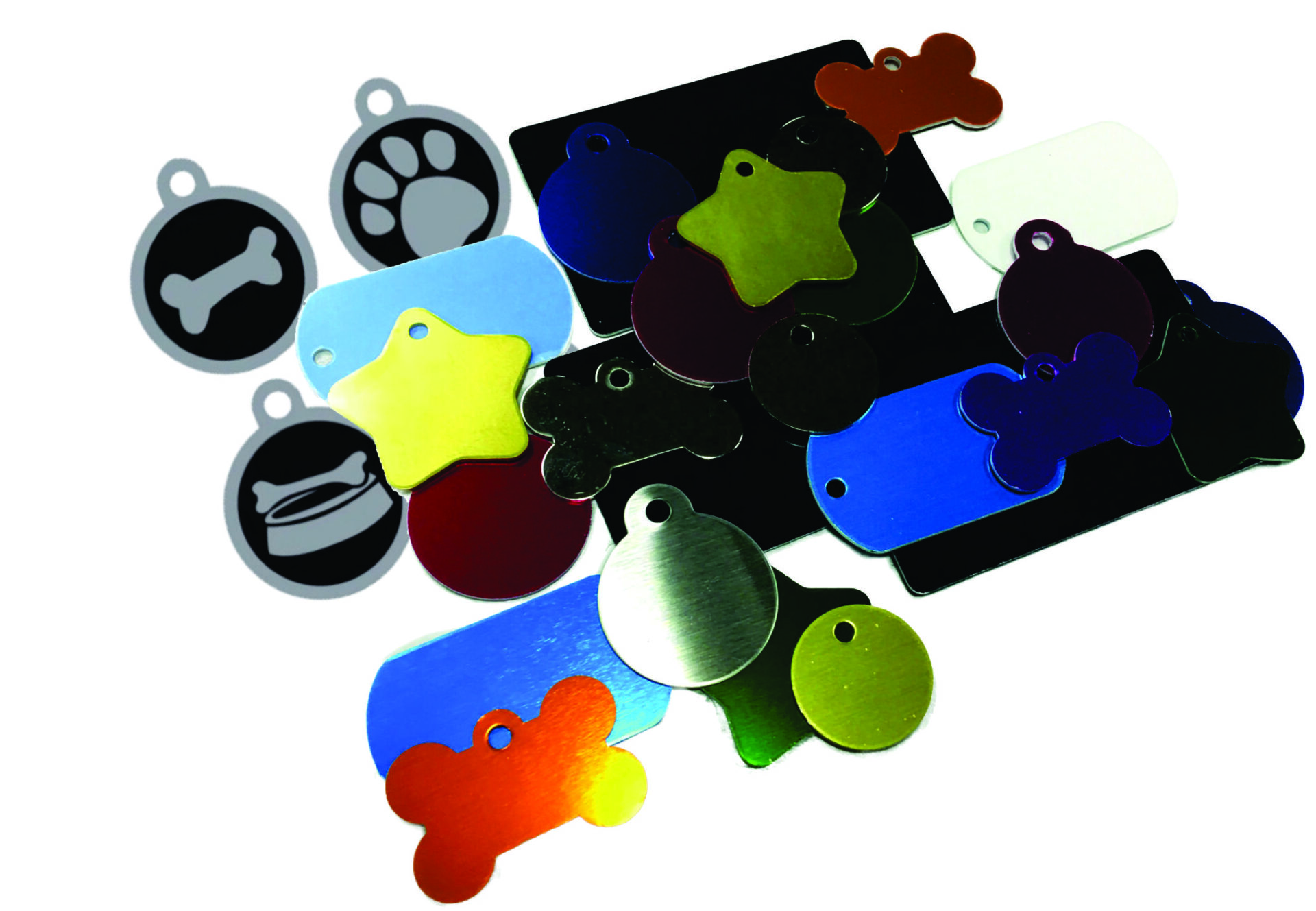 A wide range of pet ID tags available, suitable or laser or rotary engraving. Each tag can be personalised with clear, durable engraving to help keep your pet safely identified.
